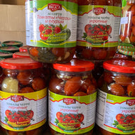 Preserved cherry tomatoes with dill & hot, mix with cucumbers 1L glass jar
